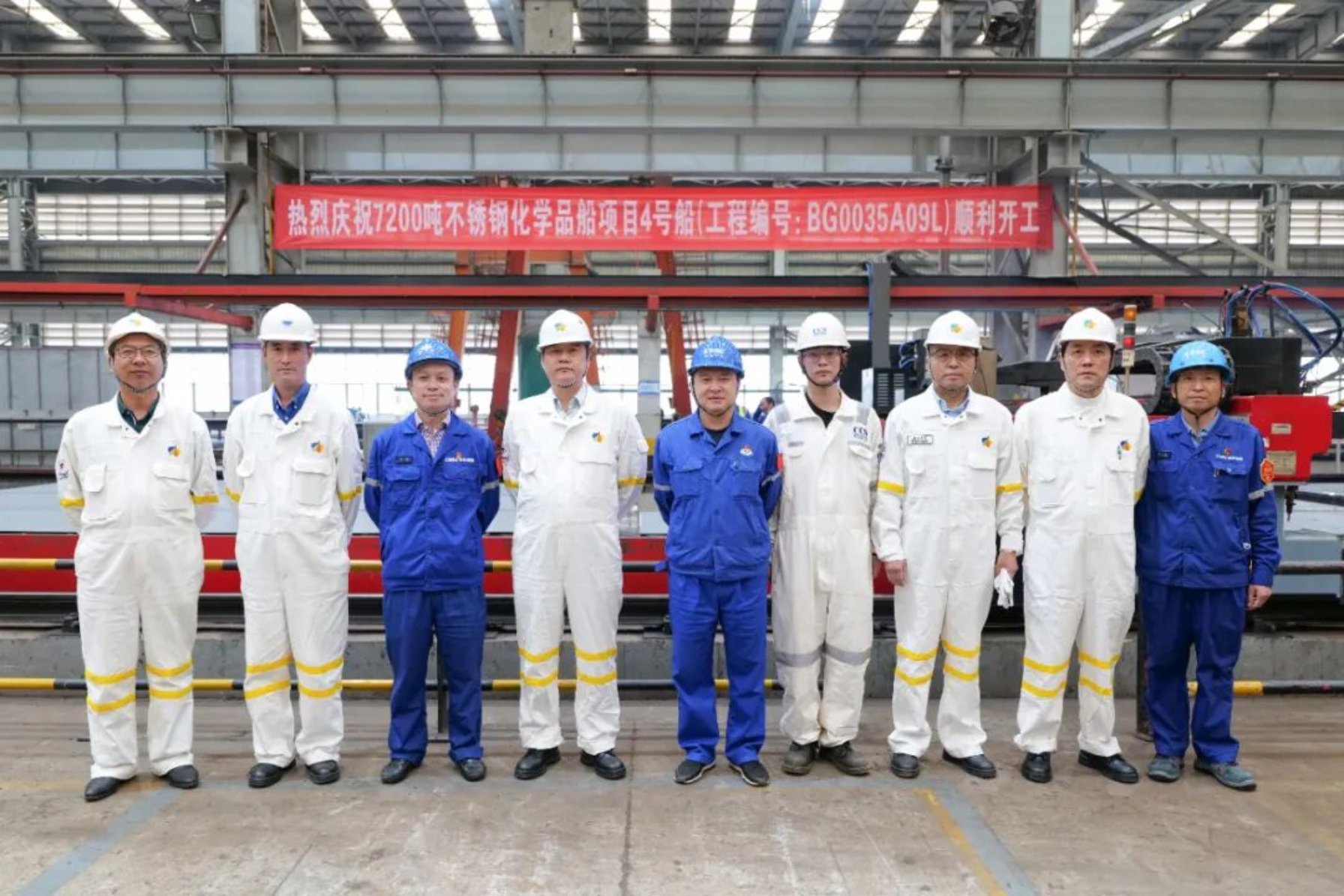 2022年10月27日,中國船舶武船承建上海君正船務有限公司的7200載重噸不銹鋼化學品船項目4號船在武船雙柳總部順利開工。