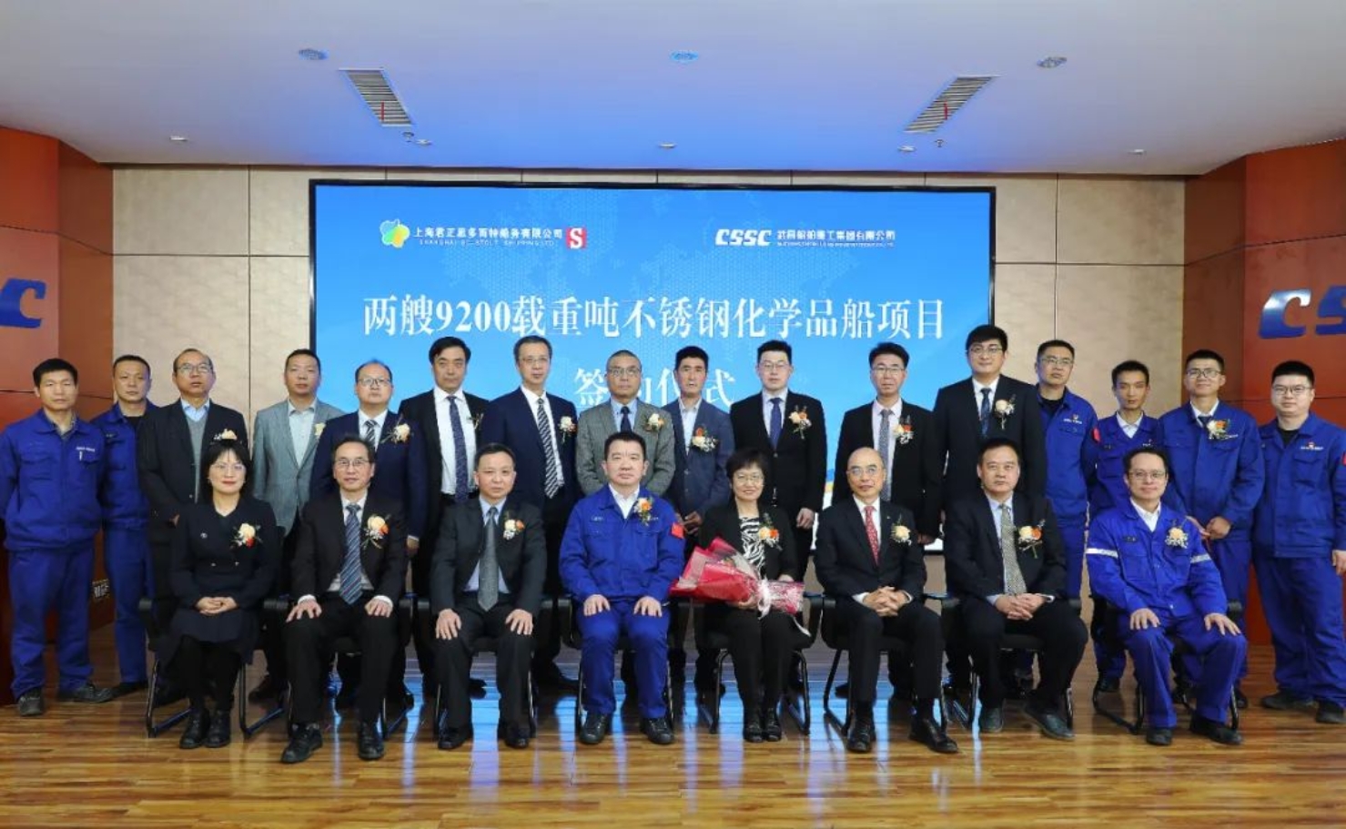3月30日上午,中國船舶集團武昌造船與上海君正思多而特船務有限公司簽訂兩艘9200載重噸不銹鋼化學品船項目建造合同,簽約儀式在公司雙柳廠區舉行,上海君正思多而特船務有限公司董事長司良女士、公司經營部部長李濤先生代表雙方在建造合同上簽字。