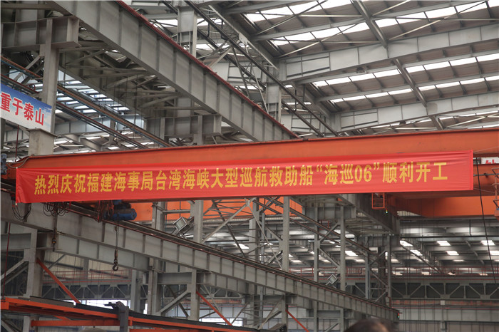 2019年5月23日上午,福建海事局臺灣海峽大型巡航救助船“海巡06”開工儀式在武船集團雙柳基地六連跨內(nèi)業(yè)車間舉行。