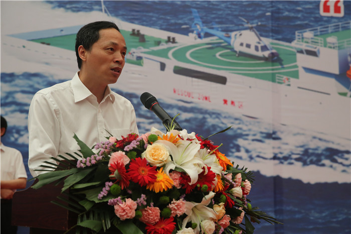 徐增福致辭表示,臺灣海峽大型巡航救助船承載著保障國家重大發(fā)展戰(zhàn)略、服務(wù)臺灣海峽兩岸交流交往、提升海事履職能力的重要使命,是福建海事局設(shè)施建造中的重大標志性工程。我們堅信并希望武船集團能夠克服重重困難,在多方的大力支持及配合下,保質(zhì)保量按期交付一艘“精品船”、“明星船”,為進一步增強我國海事監(jiān)管和應(yīng)急反應(yīng)能力,承擔(dān)起臺灣海峽海上交通安全保障和海上救援的重任助力!