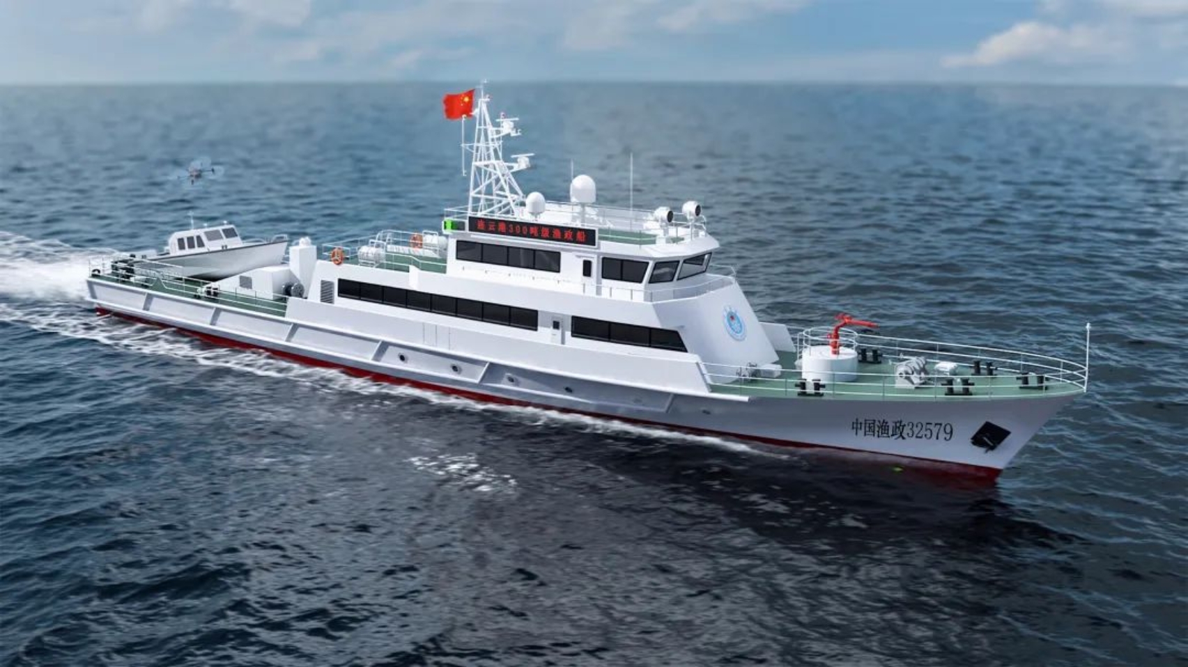 全船總長53米,型寬7.8米,型深4米,船型為深V型,傾斜船艏、方尾,采用通長甲板、雙機、雙槳,直線推進方式;主船體為鋼質,甲板室為鋁質。建成后將代表國家行使漁業行政執法權,有效履行連云港管轄海域漁政、漁業等相關漁業行政執法管理;滿足執行200海里專屬經濟區巡航管理任務的需要;兼顧漁業海難輔助救助等任務。