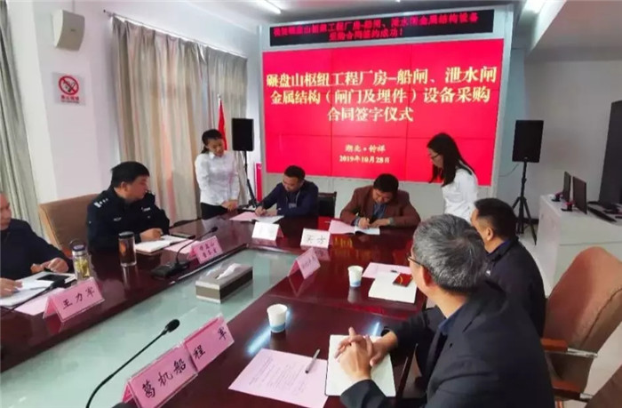 10月28日,軍運會閉幕的第二天,武船集團重裝公司再傳捷報?C?C武船集團重裝公司與湖北省碾盤山水利水電樞紐工程建設管理局,就湖北省碾盤山水利水電樞紐工程廠房?C?C船閘項目在湖北鐘祥舉行簽約儀式,武船集團產業部部長黃星、重裝公司董事長李平川出席了本次簽約儀式。該項目合同額超8000萬元,是武船集團重裝公司繼軍運會結束后的首個合同訂單,也是水工產品領域的又一大單。