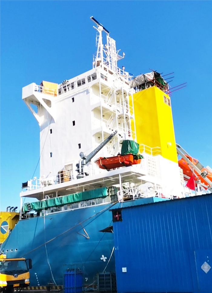 經過反復細致地計算和論證,并得到了船東、船檢以及技術、質量部門的認可,該船順利離廠,經過3天的時間成功抵達南通碼頭并實現當天恢復生產。