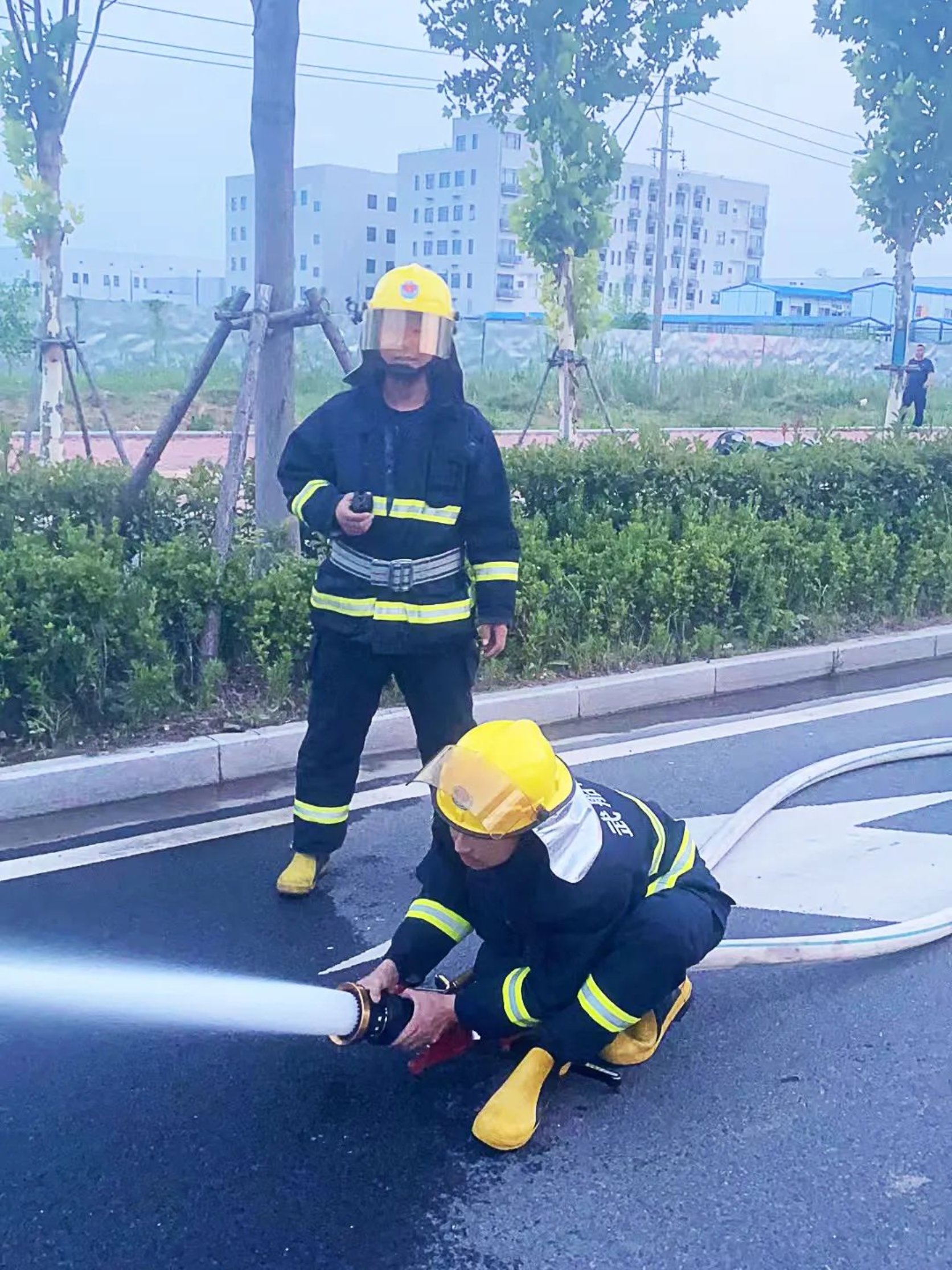 現場火勢很猛,輪胎燃燒的火焰烘烤著汽油罐體,隨時都有爆炸的可能。寬闊的馬路上沒有掩體,隊員們知道爆炸會傷及自身,但職責使命大于一切,敢于赴湯蹈火、不怕犧牲是消防隊員最基本的職業素質。