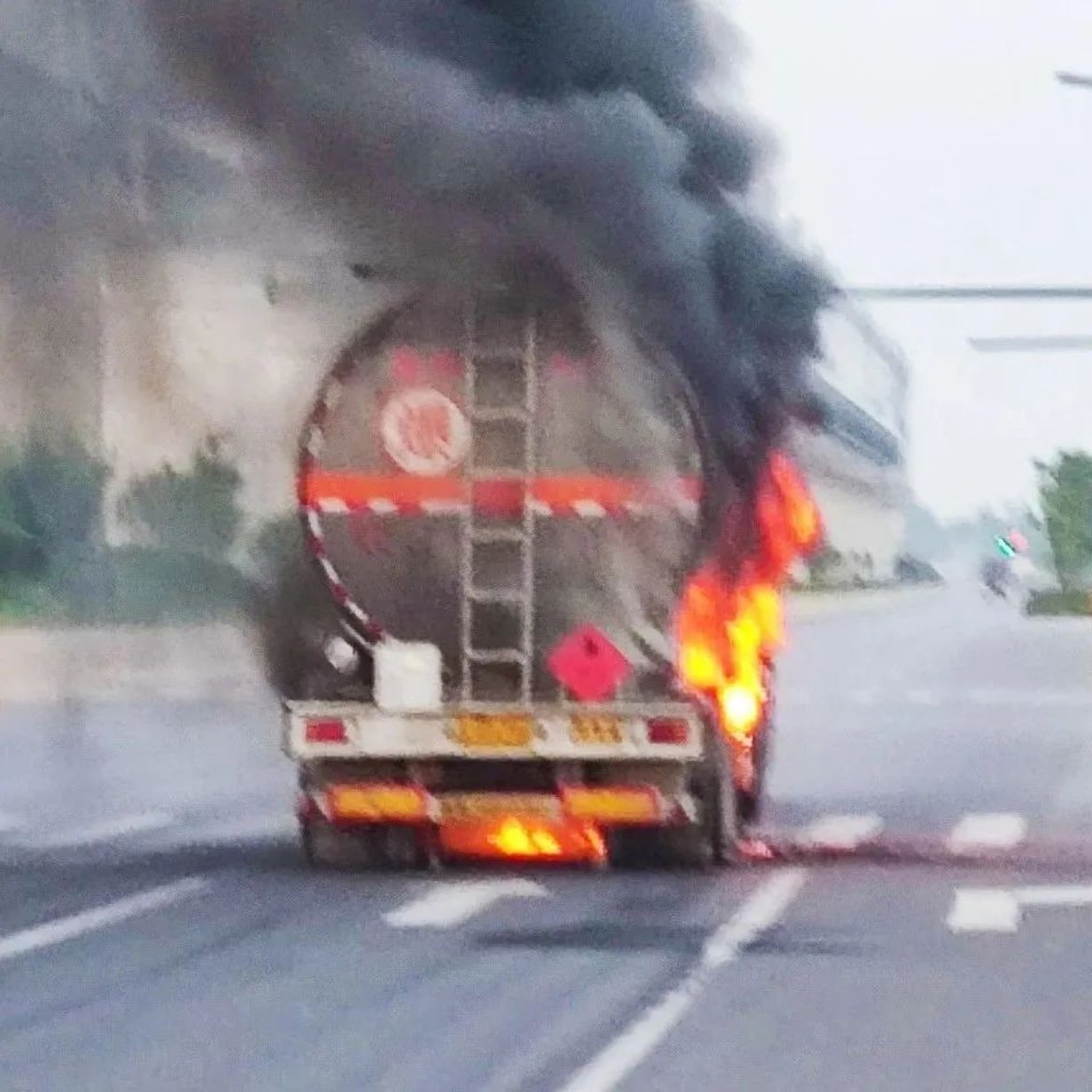 6月12日晚19時,一輛汽油罐車在星谷大道上燃燒,武昌造船消防隊接到新洲區消防大隊的緊急出動命令,迅速趕赴現場。