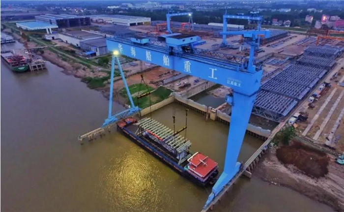 目前,武船重工股份已完成30個節(jié)段前6輪的桁架拼裝工作,項目部從前期策劃、擬定施工方案、場地選址等方面進(jìn)行了充分論證和合理安排。在節(jié)段發(fā)運之前,武船重工股份充分做好節(jié)段發(fā)運前的各項工作,分析了近5年黃石水位數(shù)據(jù),結(jié)合600公里航距中14座長江大橋限高因素和荊江段航道深度僅3.5米的實際情況,對運輸船舶選型制定了各項要求,編制了發(fā)運方案,并于7月26日通過了專家評審,確保整個裝船發(fā)運工作萬無一失,一氣呵成。