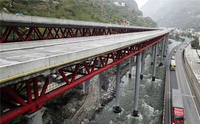 汶川克枯大橋是汶馬高速的控制性工程之一,全長6.43公里,整橋采用鋼管混凝土組合,其重量僅為混凝土結構的一半,又同時具有鋼管和混凝土橋梁的優點。它的建成,代表著在高烈度地震區、復雜地形山區的高速公路建設上,找到了一種抗震性能好、經濟適用、工業化程度高的新橋型。