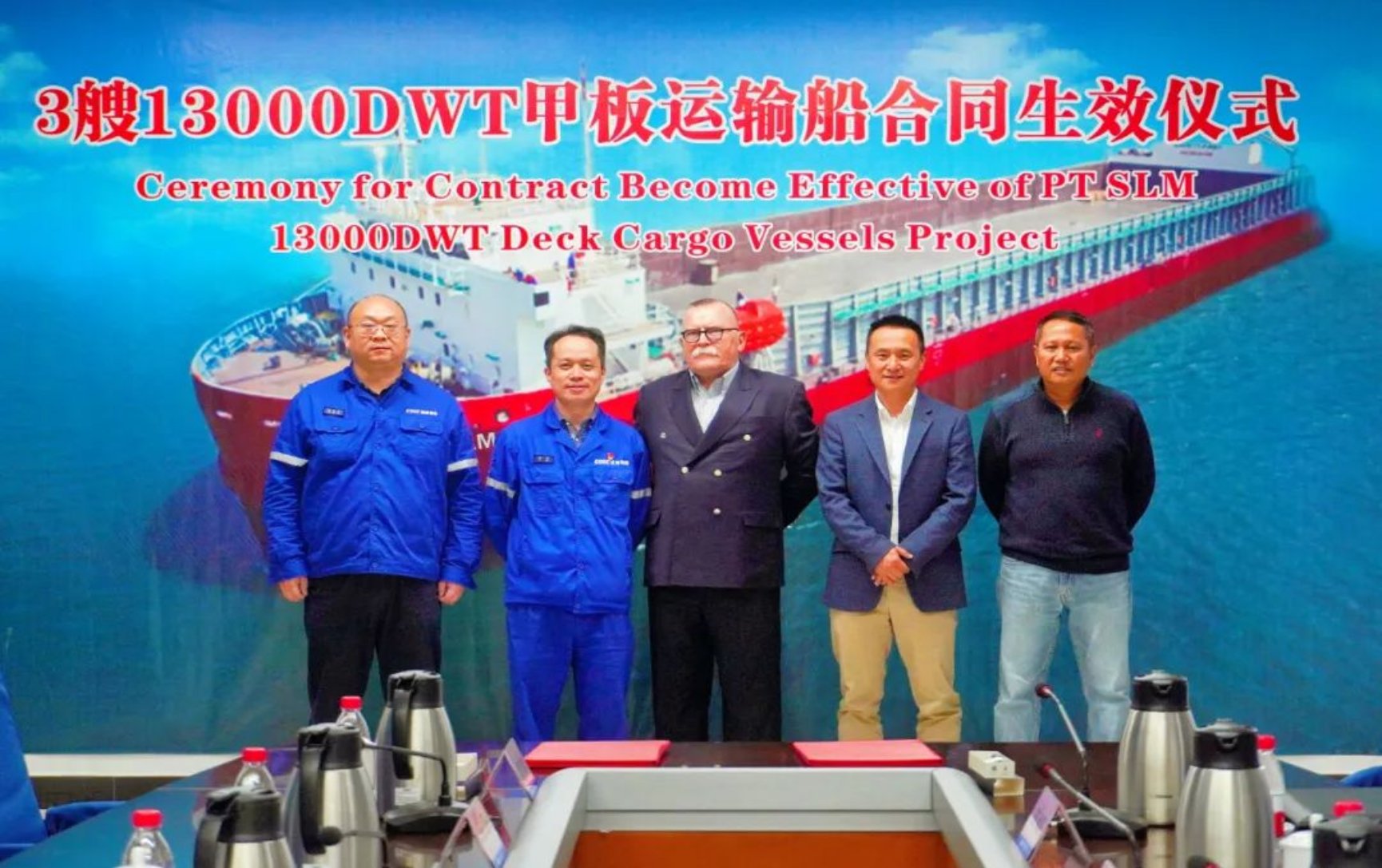 3月28日,中國船舶集團武昌造船和印尼PT SLM公司簽訂的3+3艘13000DWT甲板運輸船合同生效儀式在雙柳廠區順利舉行。本次的簽約生效充分體現船東對武昌造船的進一步認可與信任PT SLM公司董事Emmanuel DUR先生、金海洋船舶管理有限公司總經理紀偉先生及武昌造船設計研究院、海工院和經營部部門領導參加了生效儀式