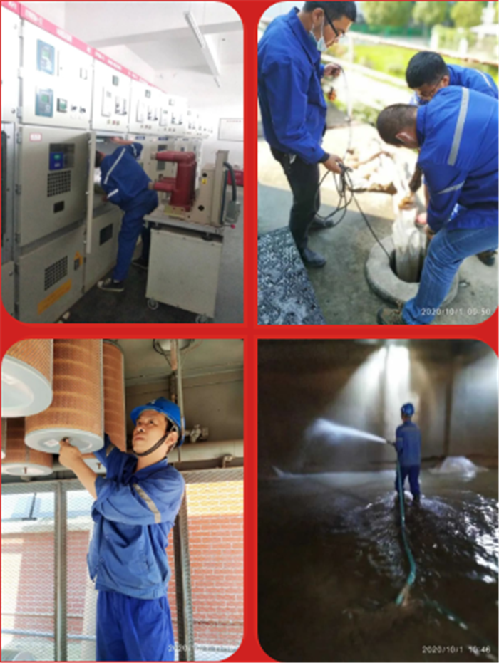 智能化部能供一區雙柳配電站和空壓站,利用國慶中秋節放假時間,安排配電和空壓人員對絞車室開閉所變配電站設備、冷卻塔水池進行保養和清洗,更換完成三臺離心空壓機濾芯,通過對動力設備的保養維護,有力地保證了設備的正常運行。