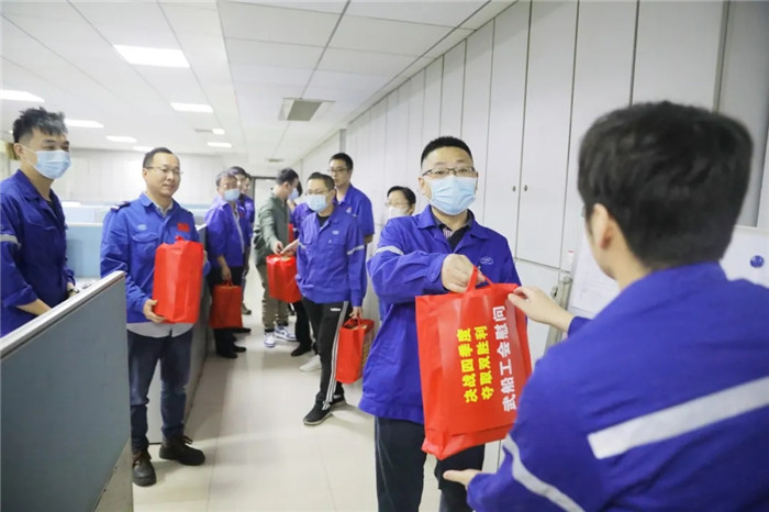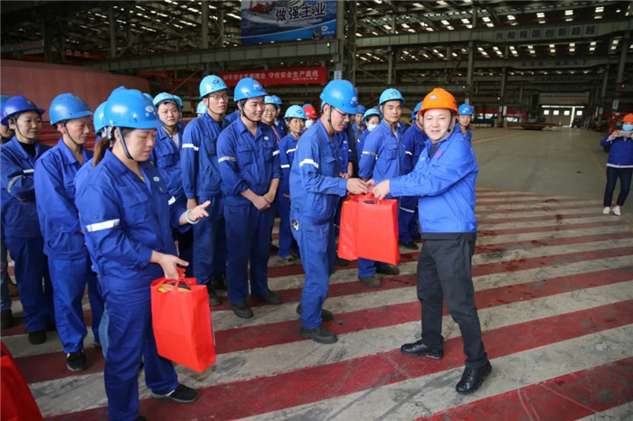 目前,因在制產品周期緊任務重,為沖刺2020年度目標任務,中國船舶武船集團干部職工雙節期間仍然堅守工作崗位,奮戰在重點產品、重大節點施工現場。10月3日,公司領導王渭齡、田軍、唐瀅及公司工會分別在武昌、雙柳廠區慰問國慶、中秋雙節期間加班的一線職工和技術管理人員,表達公司黨委、行政和工會對各地節日加班職工的關心問候和祝福,并送去慰問品。