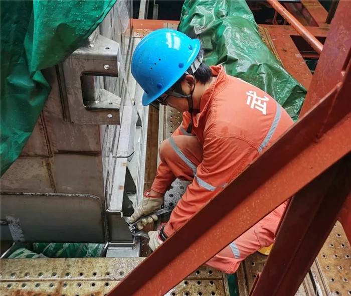 節假日期間,武船重工股份員工奮戰在各橋址一線。