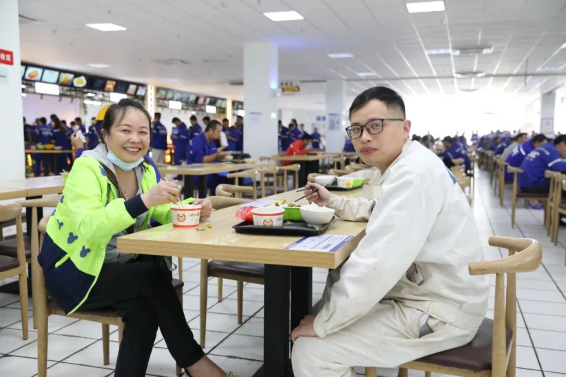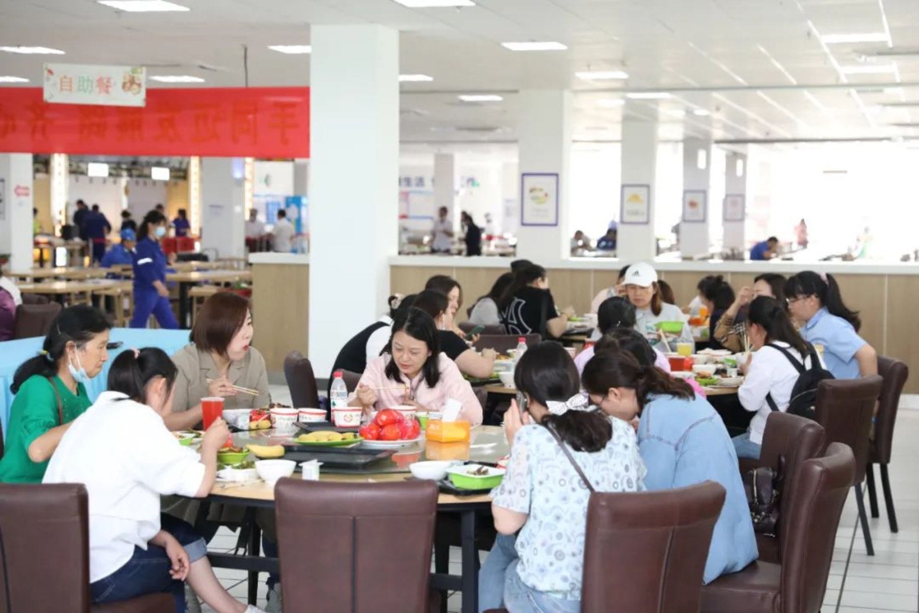 職工家屬參觀職工食堂,并體驗職工午餐