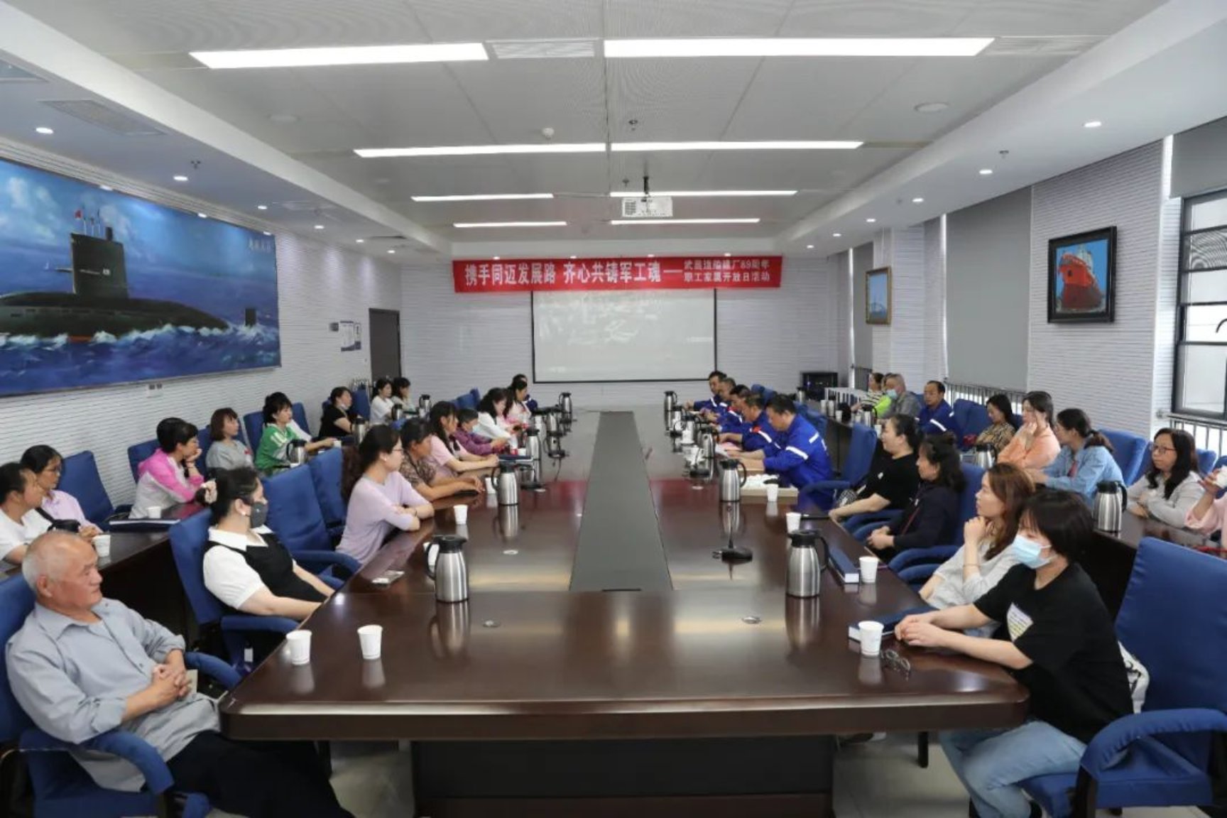6月6日,為慶祝中國船舶集團(tuán)武昌造船建廠89周年,讓職工家屬進(jìn)一步了解公司的生產(chǎn)經(jīng)營情況,增進(jìn)交流,共同營造良好的企業(yè)文化氛圍,公司舉辦“攜手同邁發(fā)展路 齊心共鑄軍工魂”職工家屬開放日活動。本次開放日活動邀請來自公司不同崗位上的38名職工家屬代表,共聚雙柳新廠區(qū),共話公司發(fā)展和未來。公司黨委書記、董事長姜濤,黨委委員、副總經(jīng)理、工會主席田軍參加活動。