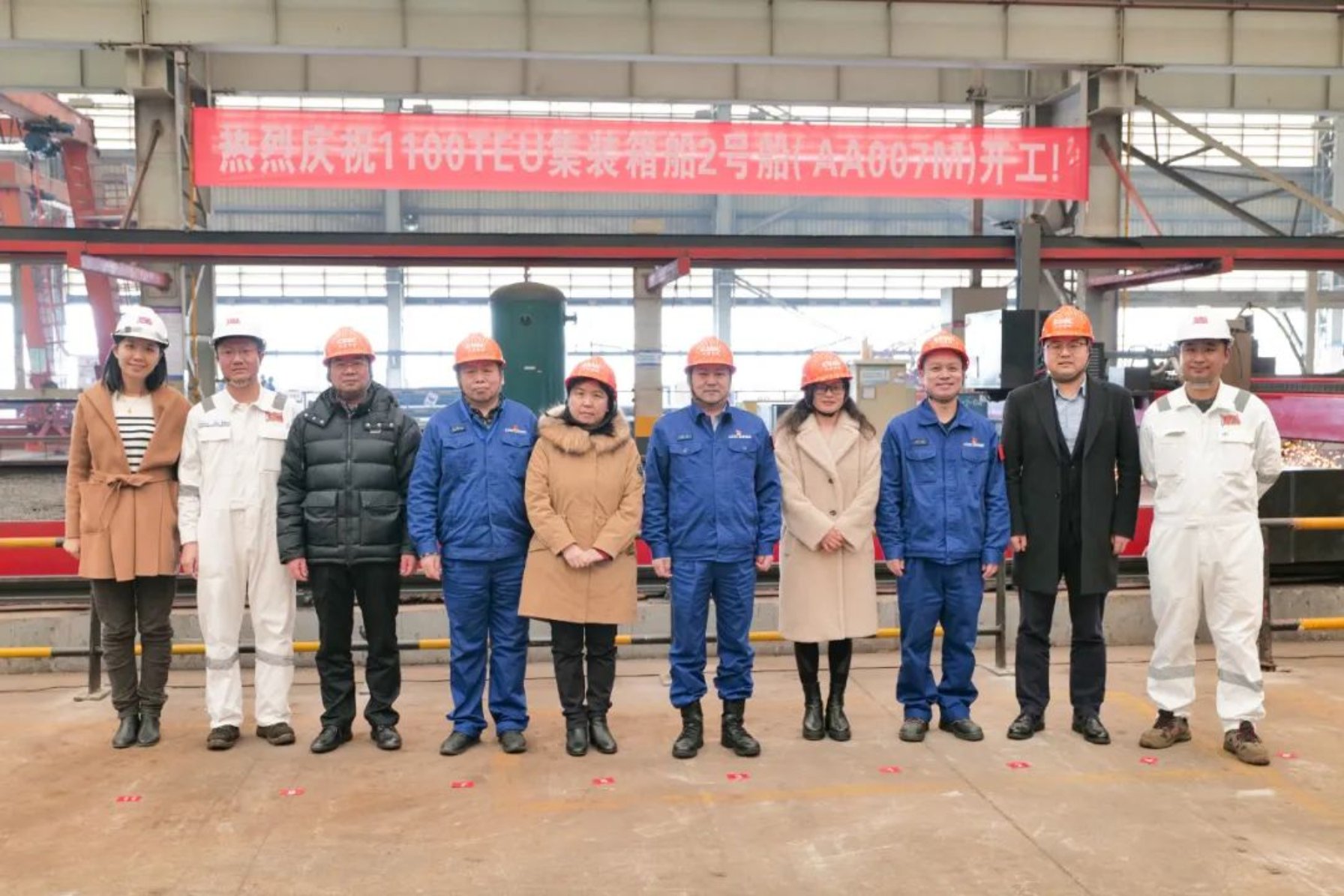 2月14日上午11時18分,中國船舶集團武昌造船為CA Shipping建造的1100TEU集裝箱船2號船在雙柳順利開工。