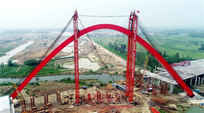 濟祁高速新橋大橋鋼箱拱順利合攏;