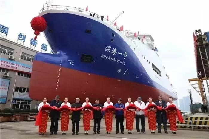 2018年12月8日 我國自主研制的第一艘載人潛水器支持母船?C?C“深海一號”在武船集團總部順利下水。