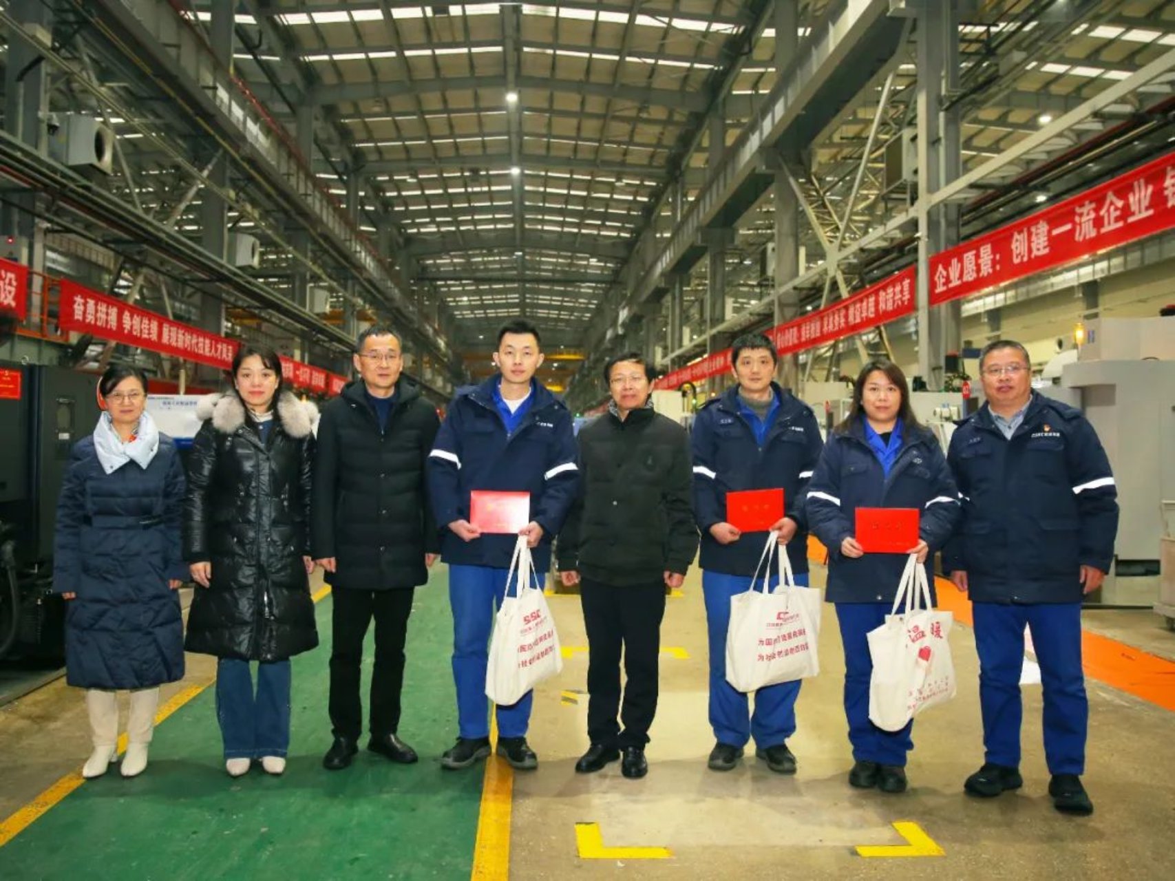 秦少相主席一行在船臺(tái)總裝區(qū)、數(shù)控加工區(qū)等生產(chǎn)區(qū)域,親切慰問(wèn)了公司一線職工代表,送上慰問(wèn)金和慰問(wèn)品,詢問(wèn)了大家的工作及生活狀況,對(duì)大家立足崗位、拼搏奮斗,為國(guó)防建設(shè)作出的重要貢獻(xiàn)表示感謝,期望大家牢記初心使命,奮勇?tīng)?zhēng)先,為全面推進(jìn)中華民族偉大復(fù)興作出新的更大貢獻(xiàn)。