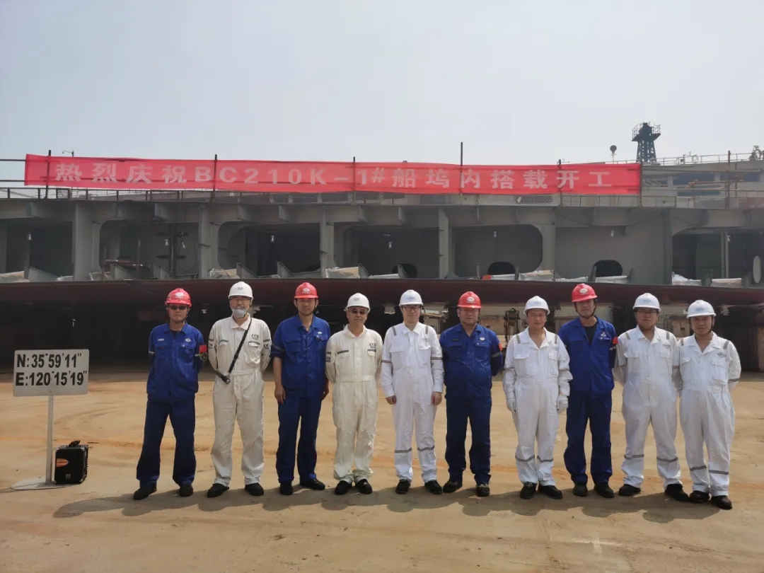 21萬噸散貨船系列首制船,塢內建造共計52個總段,巨型總段總組后整體重量將達到2000余噸,北船重工計劃采用“艏部巨型總段總組,塢內整體回靠合攏”的工藝方式,使用18臺分段定位機聯(lián)動功能,完成總段塢內回靠、合攏,達到主甲板貫通節(jié)點,可整體縮短結構專業(yè)15天以上塢期。