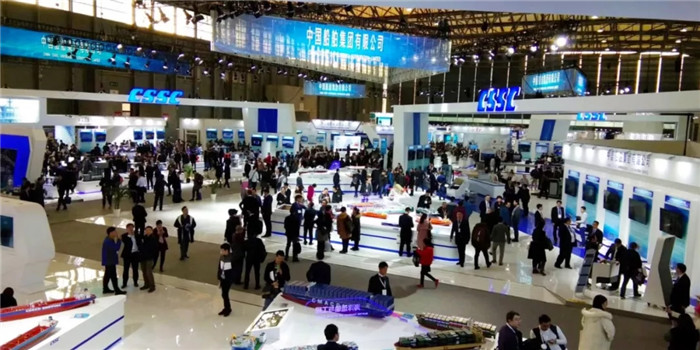 ▲第20屆中國國際海事會展中國船舶集團展區(qū)