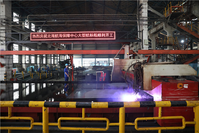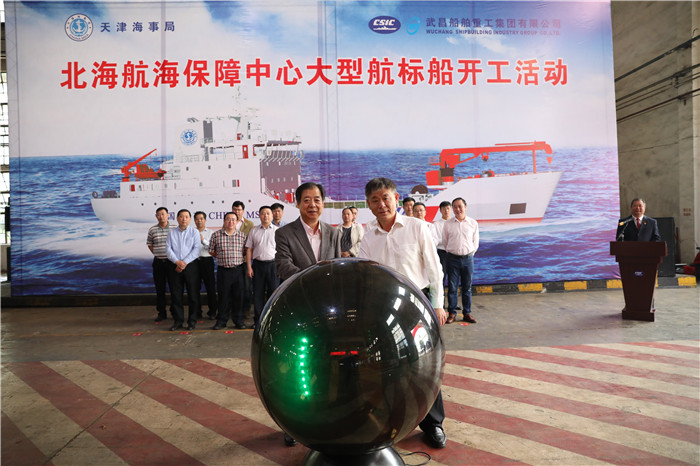 2019年4月26日上午,北海航海保障中心大型航標船開工活動在武船集團船舶公司內(nèi)業(yè)車間舉行。北海航海保障中心副主任李樹兵、天津海事局基建裝備處副處長姜大寧、武船副總經(jīng)理王渭齡等相關(guān)單位領(lǐng)導及來賓參加了此次活動。