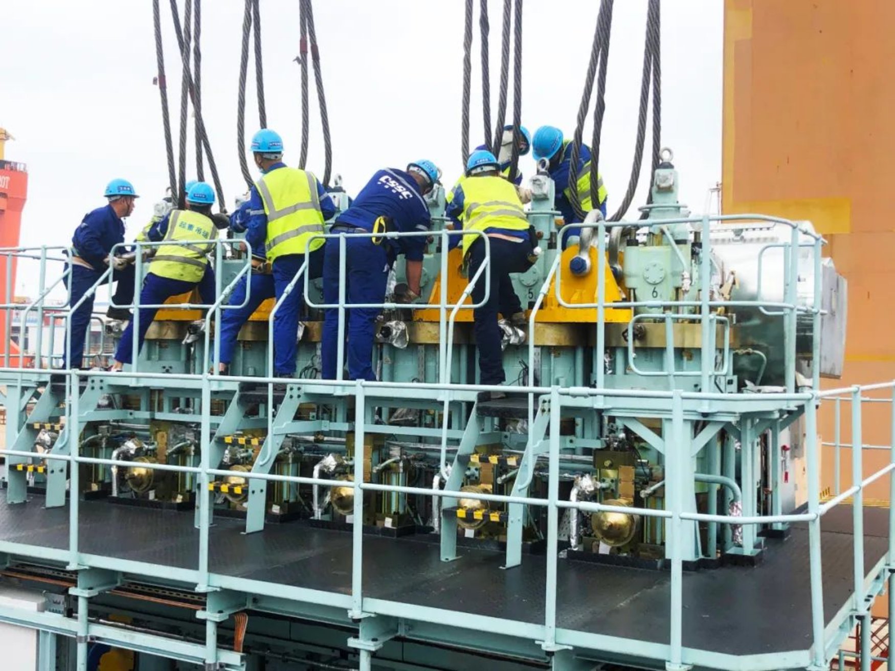 面對船臺周期時(shí)間緊,任務(wù)重的挑戰(zhàn),項(xiàng)目組與各參建單位緊密協(xié)作,時(shí)刻牢記年度交付承諾,上下統(tǒng)一思想,主動擔(dān)起責(zé)任,嚴(yán)格按照生產(chǎn)計(jì)劃推進(jìn)項(xiàng)目進(jìn)度,特別是在建造過程中大力推行一級總組、二級總組及船臺搭載同步平行施工,不斷提升船舶舾裝完整性和建造效率,縮短船臺建造周期。截至目前,該船69個(gè)艙室已密試完成26個(gè);全船9100根管系已安裝完成8200根;全船84km電纜已拉敷完成60km;全船上建房間內(nèi)裝絕緣已施工完,正在進(jìn)行封板施工。下一步,項(xiàng)目組將重點(diǎn)圍繞舵軸施工、貨油泵安裝、液貨艙不銹鋼接頭焊接和全船管系系統(tǒng)清理等方面開展工作,為船舶實(shí)現(xiàn)完整性下水節(jié)點(diǎn)全力沖刺。