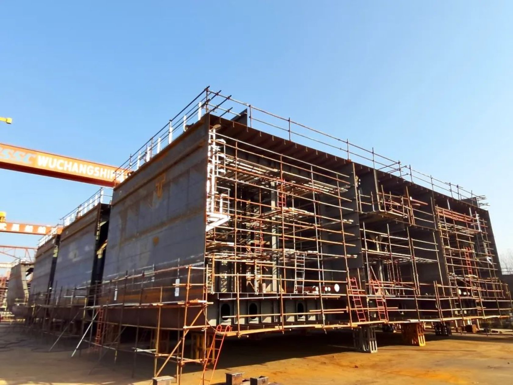 12月22日下午2點38分,由武昌造船承建的第15艘13000DWT甲板運輸船順利實現(xiàn)上船臺節(jié)點,比計劃時間提前5天,同時標志該船正式進入船臺搭載階段。船東、船檢以及相關(guān)單位負責人參加上船臺儀式。