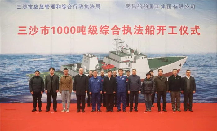 2019年12月2日上午10點08分,三沙市1000噸級綜合執(zhí)法船開工儀式在武船集團雙柳基地順利舉行。